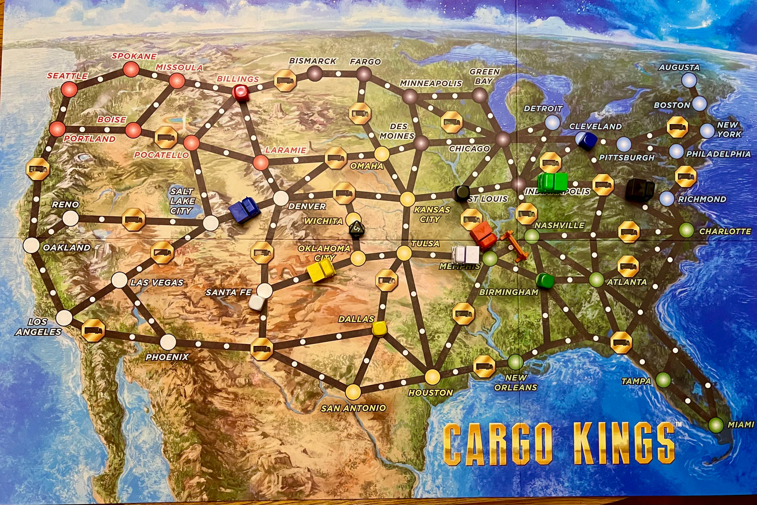 Cargo Kings is easy to start, easy to play, and fun to win game that takes 10 minutes to learn, 45-75 minutes to play, and is suitable for 3-6 players ages 12 and up.